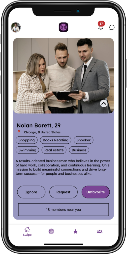 LIVE WRLD is an innovative app that helps you connect with the right people in any setting- whether at business events, social gatherings, or even in your everyday surroundings. Unlike traditional apps that cast a wide net, LIVE WRLD gives you full control over your connection radius, ensuring you connect only with people in your immediate vicinity. Whether you’re attending a large conference, mingling at a party, or simply out in your local area, you can effortlessly network with professionals, make new friends, or even find potential dating connections.